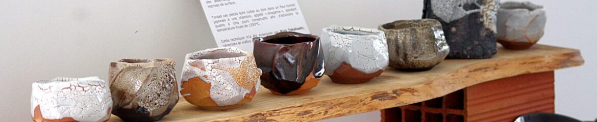 En compagnie de mon Sensei, Rizu Takahashi, qui m’a fait la surprise de sa visite.Bols, boite, Yunomi émail TenmokuChawans en grès, technique Tama ZukuriÉmail Shino sur terre noireInstant ThéVases, émail aux cendres YakishiméRizu Bouteilles grès, émail ShinoBouteilles grès, émail ShinoBouteille grès, émail TenmokuCoupe en terre noire, émail ShinoBouteille grès, émail shinoChawan Tama Zukuri, émail TenmokuBouteille carrée, superposition d’émailSalle de l’ancienne poste